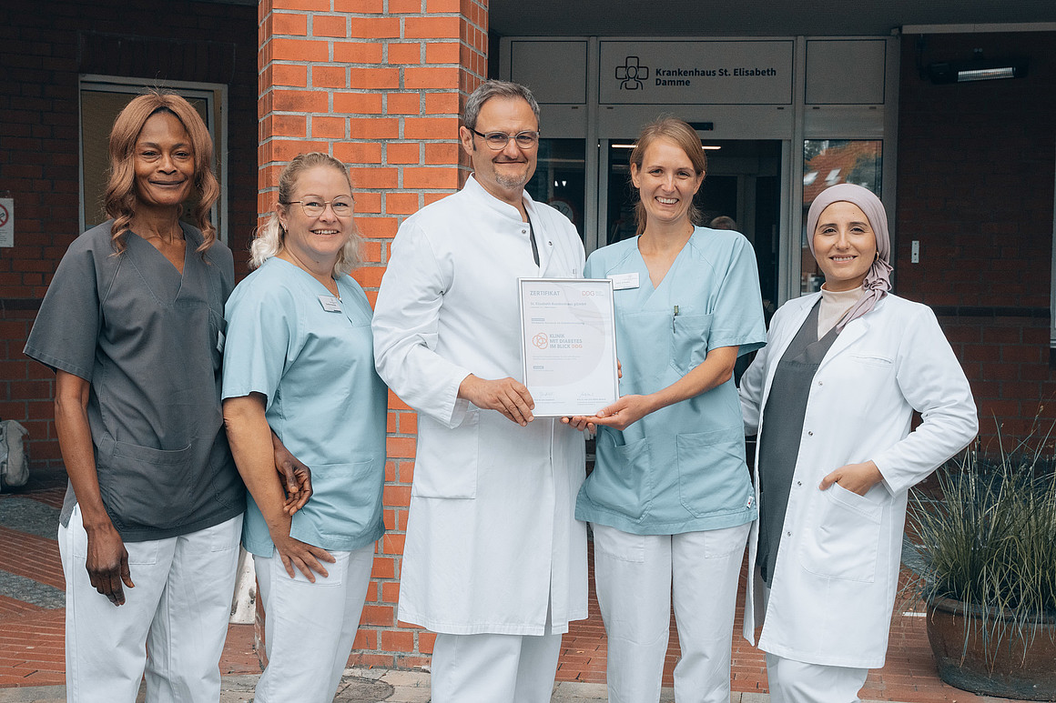 Das Diabetesteam am Dammer Krankenhaus St. Elisabeth ist ausgezeichnet worden. Es erhielt das Siegel „Diabetes im Blick“ der Deutschen Diabetes Gesellschaft (DDG).