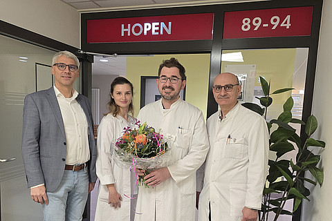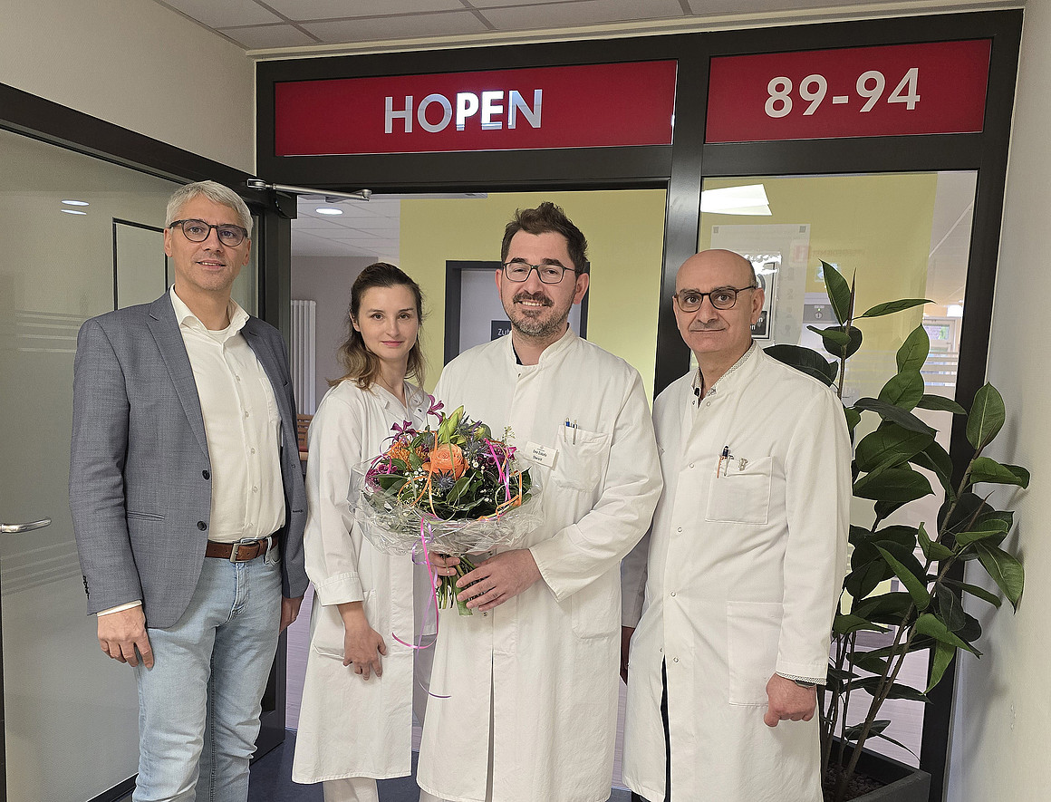 Die Chefärztin der Geriatrie, Irina Aleksandrova, ärztlicher Direktor Dr. Amjad Azem, Geschäftsführer Thomas Meyer sowie weitere Teammitglieder gratulierten Emir Zukorlic jetzt zu diesem Schritt.